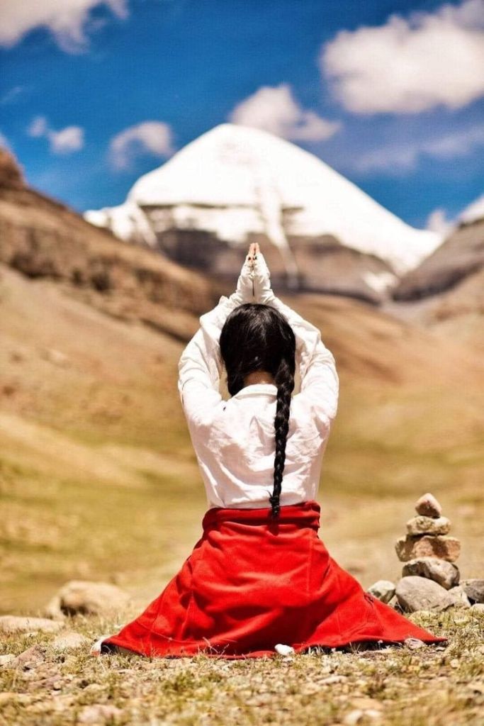 Pilgrimage by full prostration around Mount Kailash. © Galen Rowell/Mountain Light